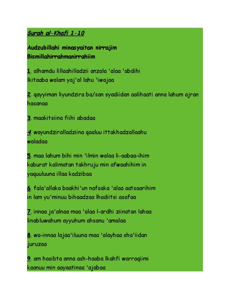 Bacaan Surah Al Kahfi Ayat 1 10 Rumi Terjemahan Serta Kelebihannya Wirid Dan Doa