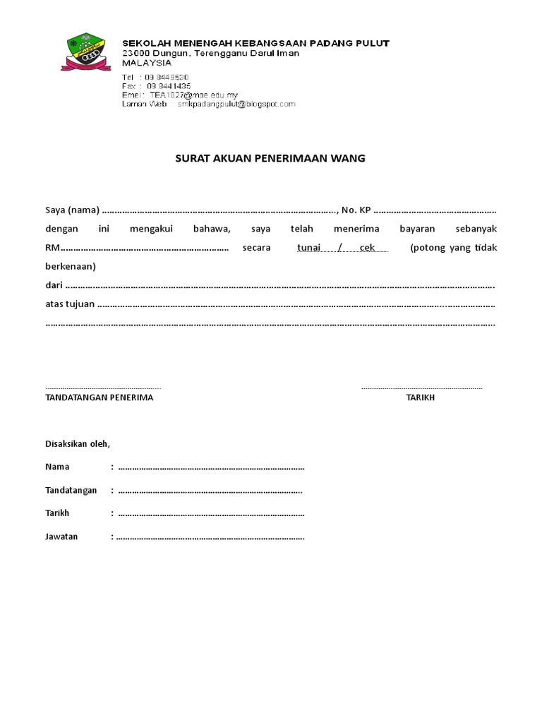 Contoh Surat Akuan Penerimaan Bayaran Cute766
