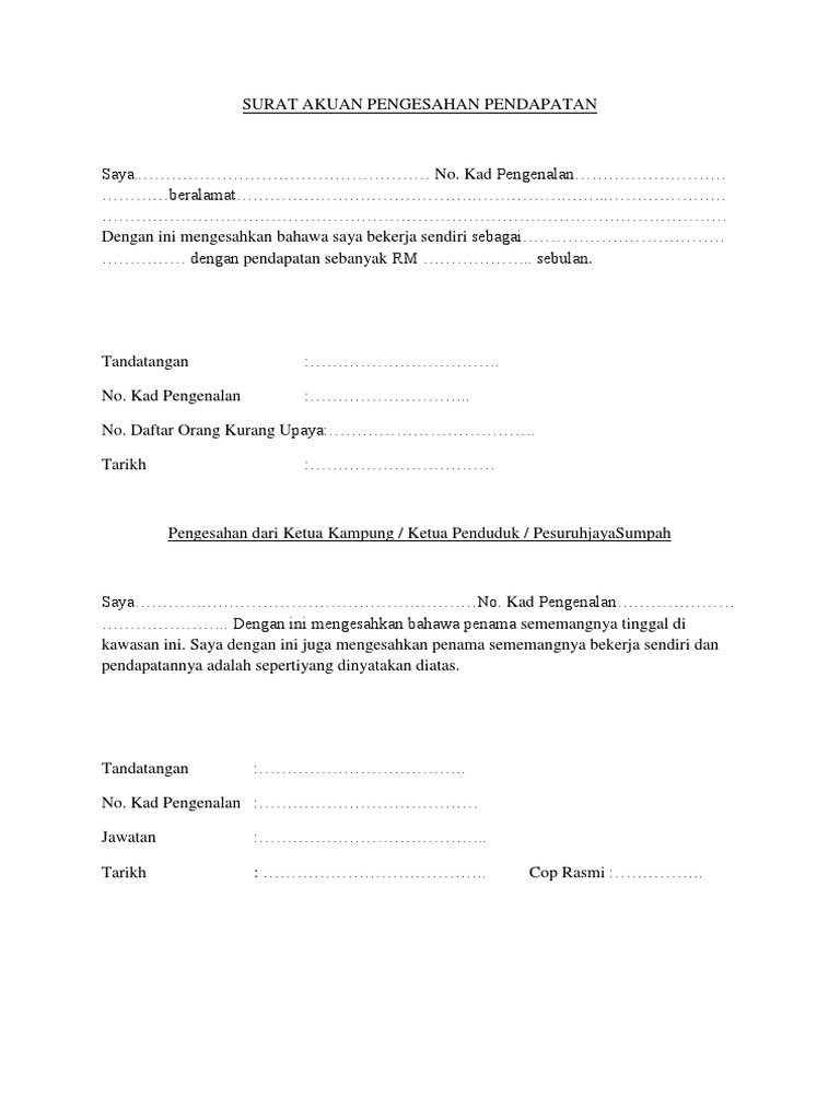 Contoh Surat Akuan Pengesahan Pendapatan Bagi Yang Bekerja Sendiri Gantikan Slip Gaji Edu Bestari