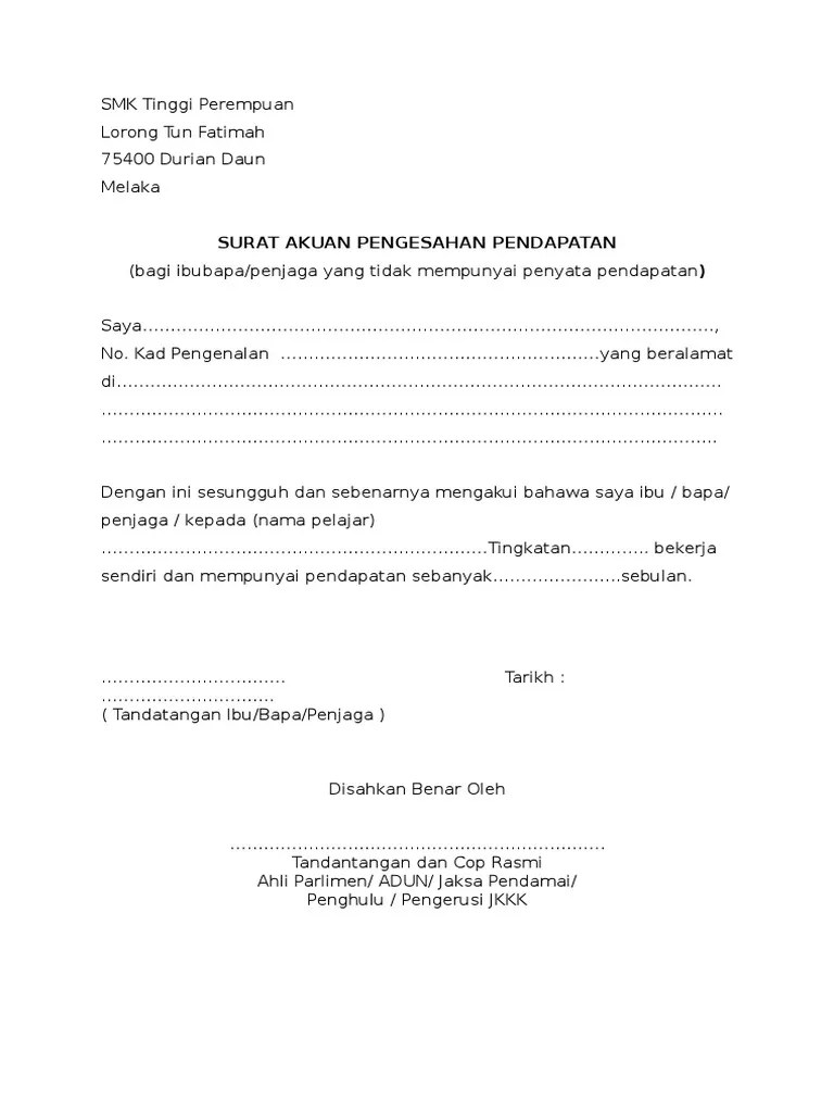 15 Contoh Surat Pengesahan Pendapatan Jkkk