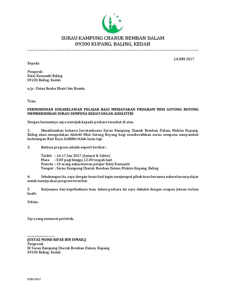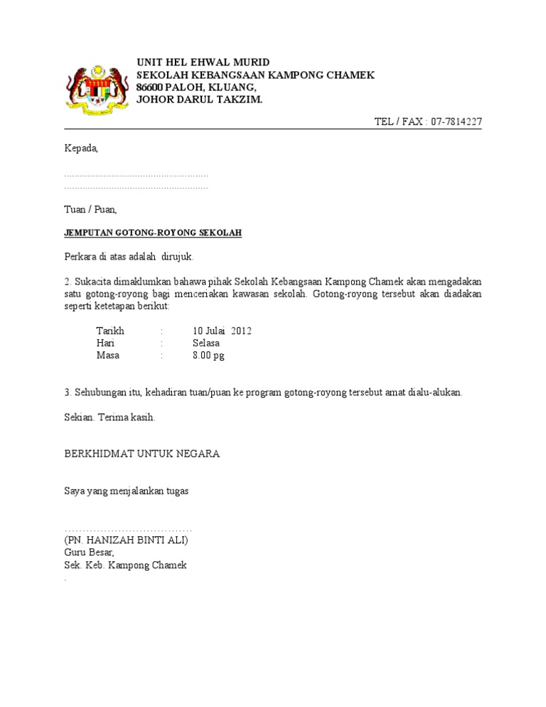 Contoh Surat Rasmi Gotong Royong Surat Rasmi E