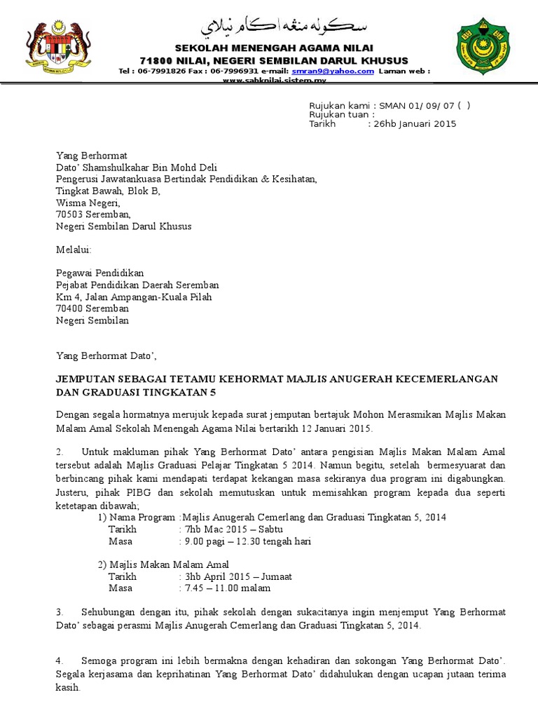 Surat Makluman Dan Jemputan Majlis Makan Malam Amal Smk Puchong Utama 1