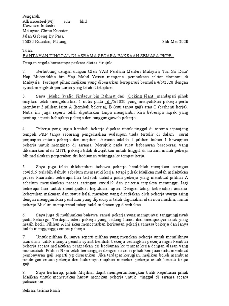 Contoh Surat Majikan Kepada Pekerja Semasa Pkpb