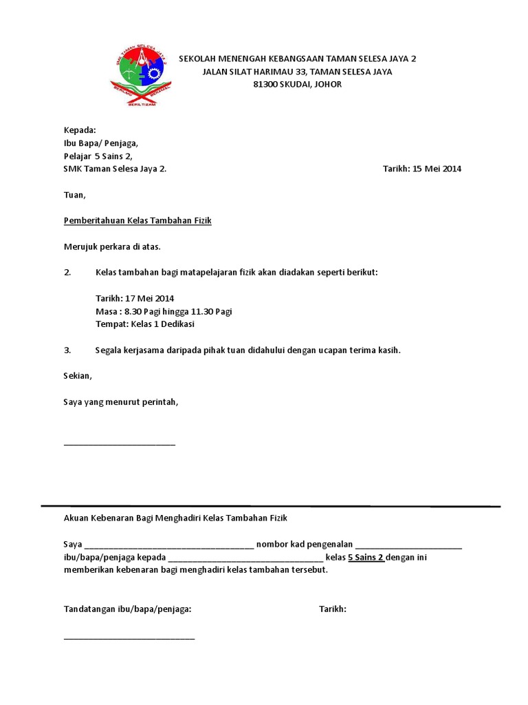 Surat Makluman Ibu Bapa Kelas Tambahan