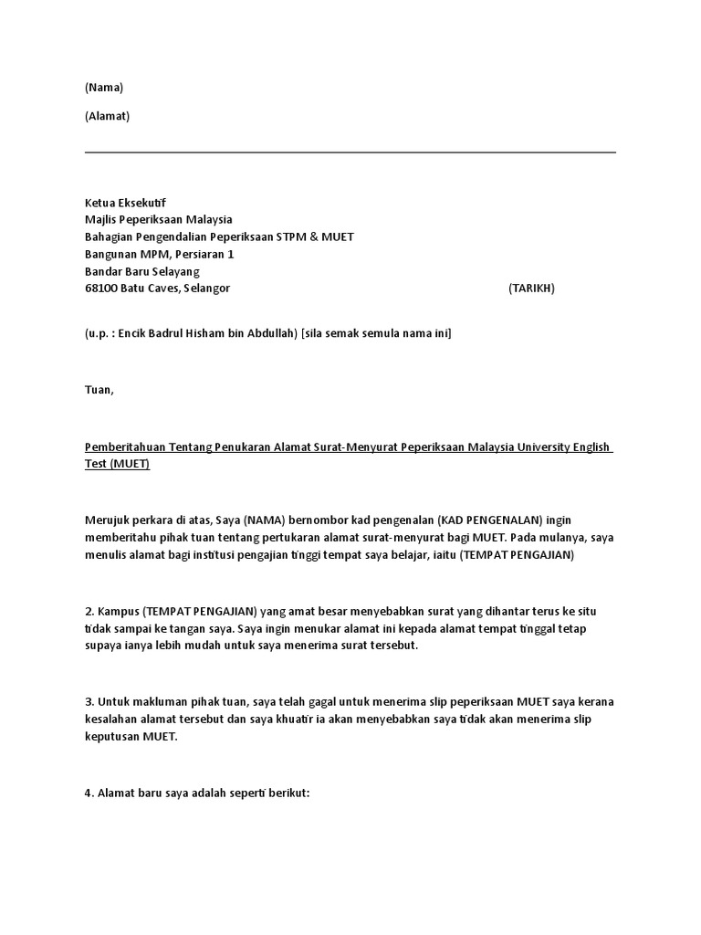Alamat Surat Menyurat In English