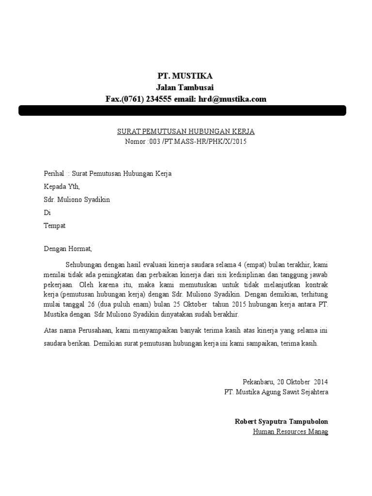Memberhentikan Pekerja Contoh Surat Pemberhentian Kerja Oleh Majikan