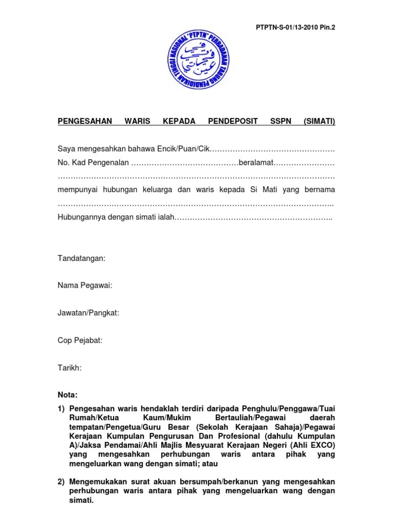 Pesuruhjaya Contoh Surat Akuan Sumpah Waris