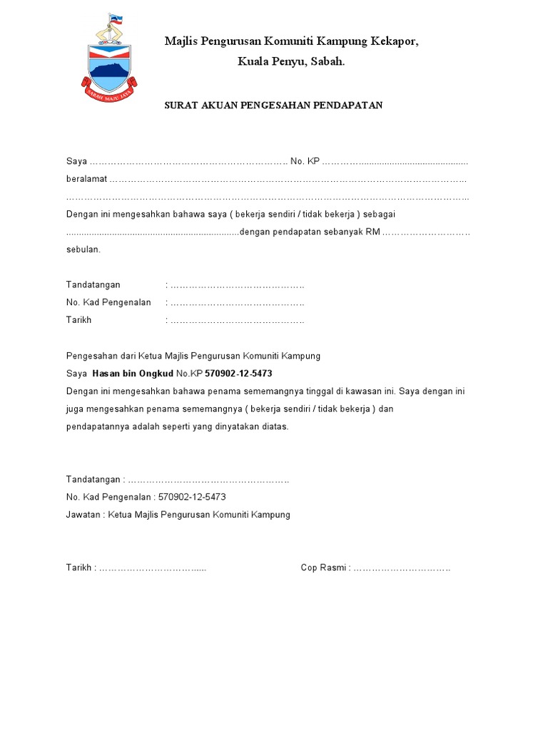 Pengesahan Pendapatan Oleh Ketua Kampung