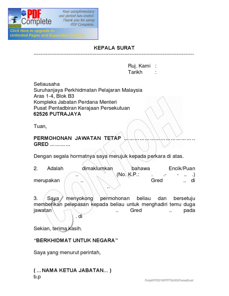 Contoh Surat Sokongan Ketua Jabatan Untuk Temuduga Spa
