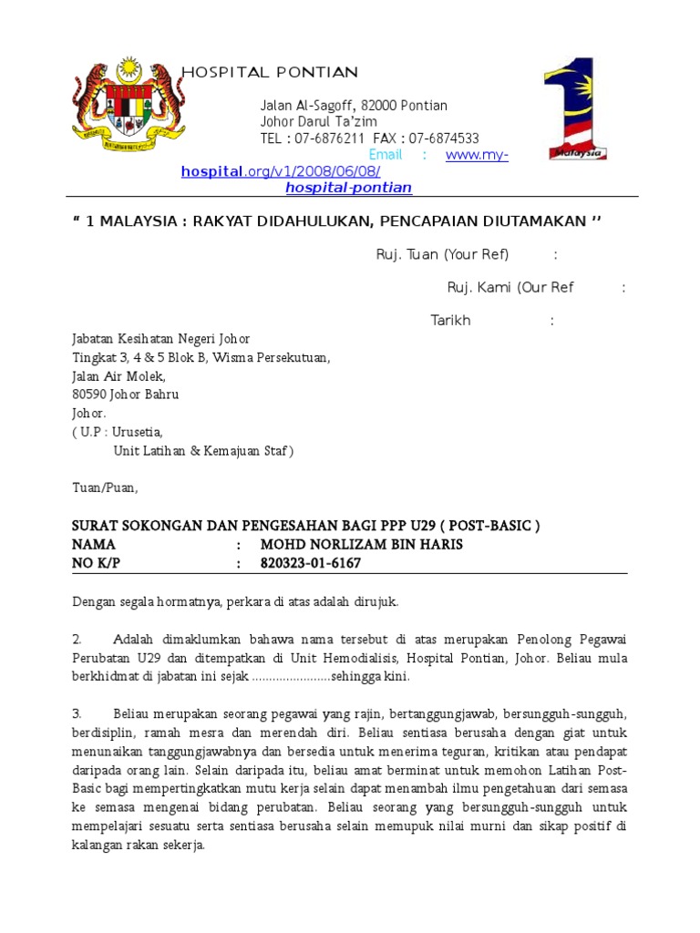 Perakuan Contoh Surat Sokongan Ketua Jabatan