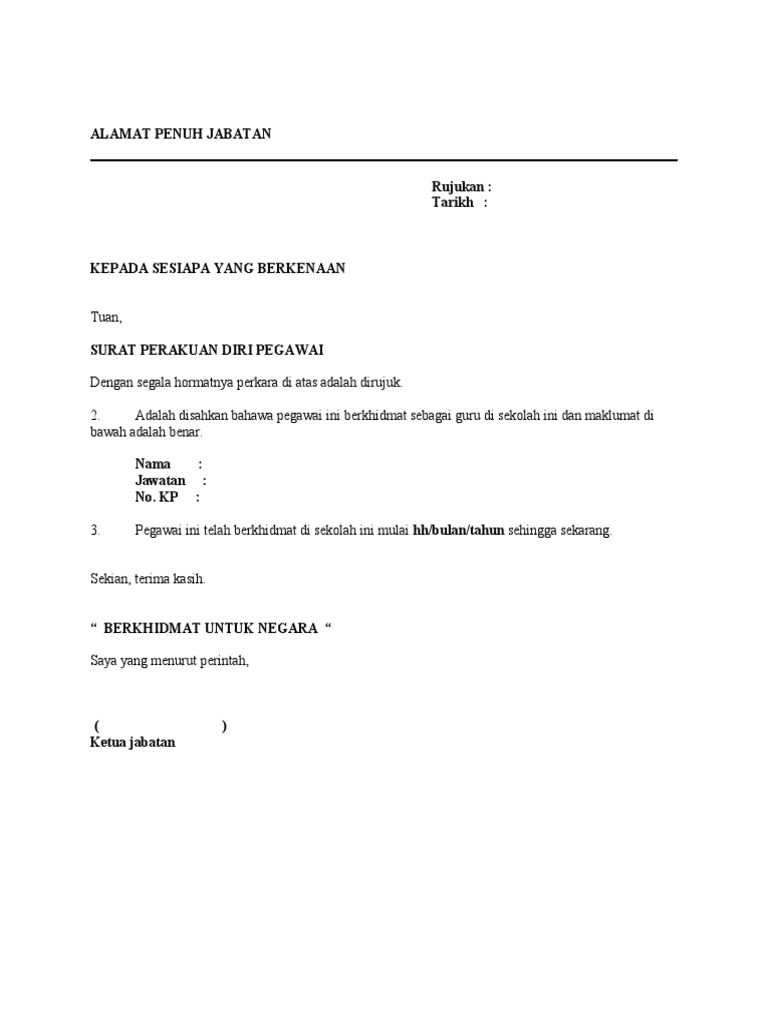 Contoh Surat Perakuan Tempat Bertugas Diri Pegawai