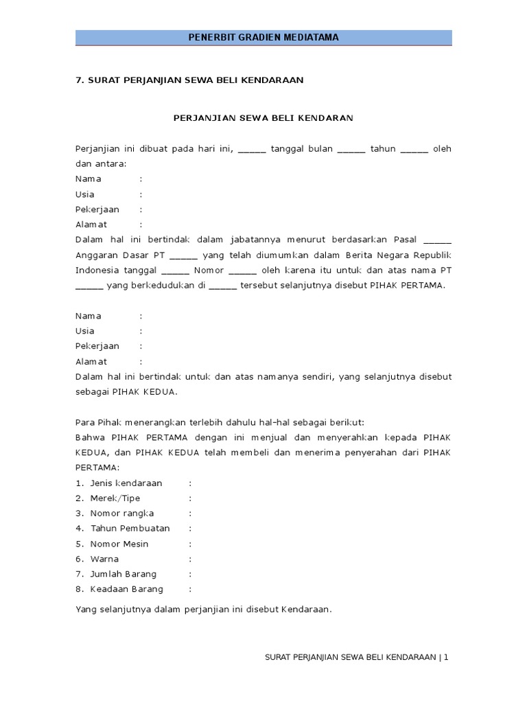 7 Surat Perjanjian Sewa Beli Kendaraan