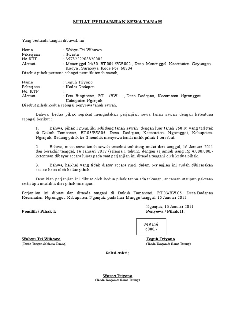 4 Surat Perjanjian Sewa Menyewa Tanah