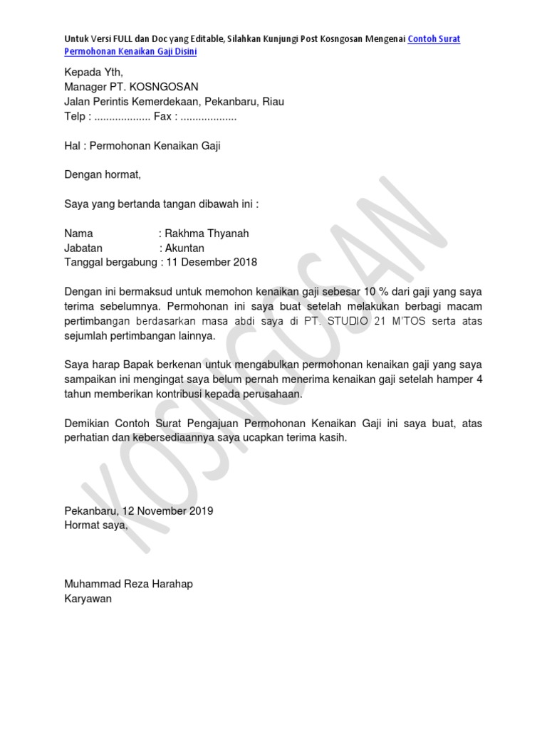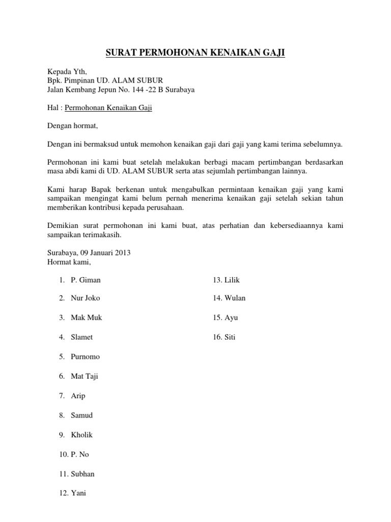 Surat Permohonan Kenaikan Gaji Pdf
