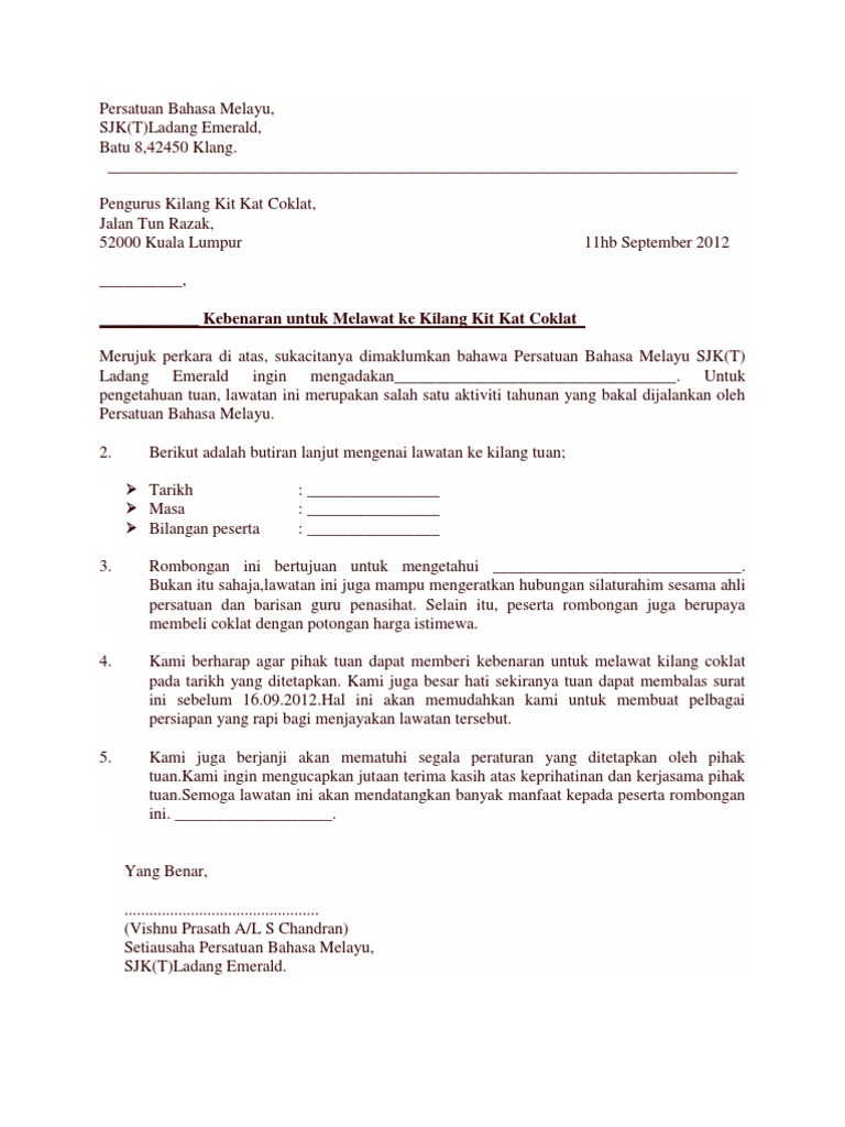 Surat Rasmi Permohonan Lawatan Sambil Belajar Ke Kilang Rasmi F Cute766
