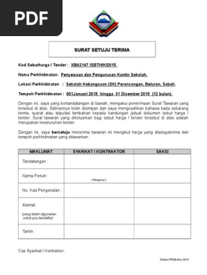 Surat Setuju Terima Tawaran Pengusaha Kantin Sekolah 2014