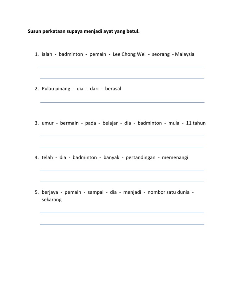 Susun Perkataan Supaya Menjadi Ayat Yang Betul