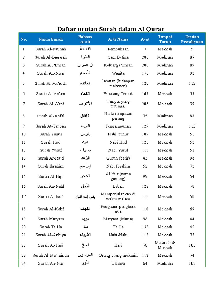Daftar Urutan Surah Dalam Al Quran Docx