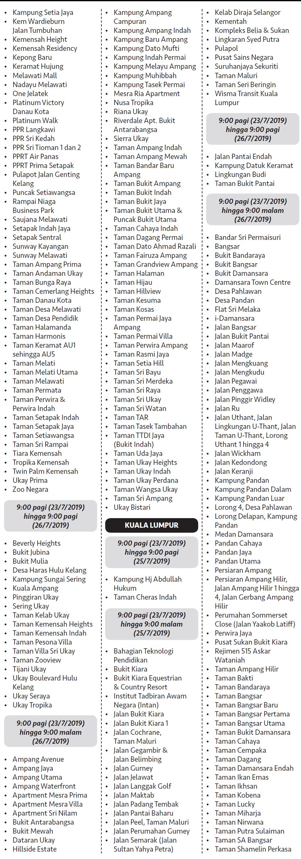 Syabas Water Disruption July 2019 Full List Of Affected Areas