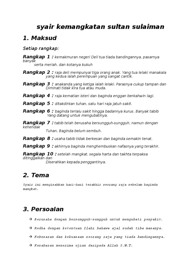 Syair Kemangkatan Sultan Sulaiman 1 Maksud