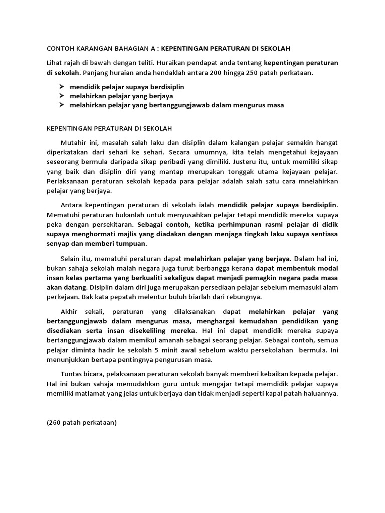Contoh Karangan Bahagian A Kepentingan Peraturan Di Sekolah