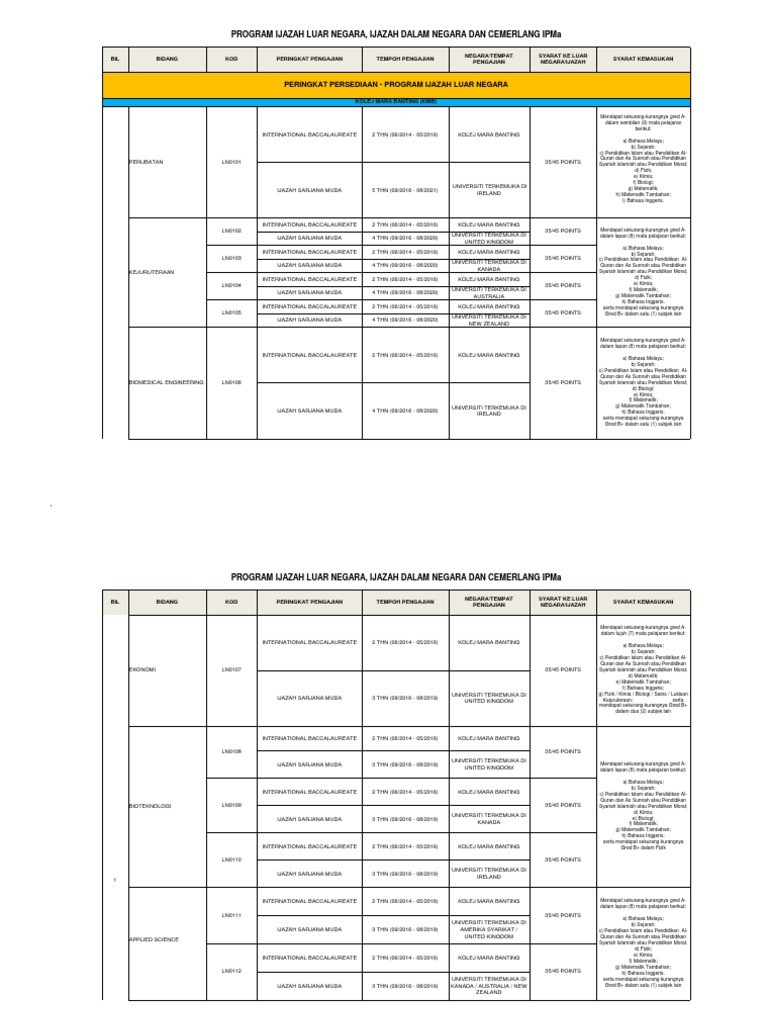 Senarai Program Ditawarkan Mara