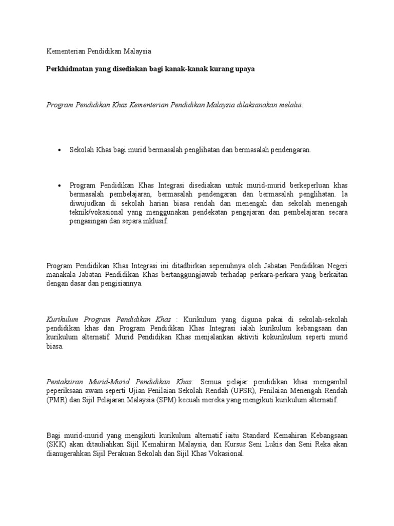 Syarat Kemasukan Pendidikan Khas