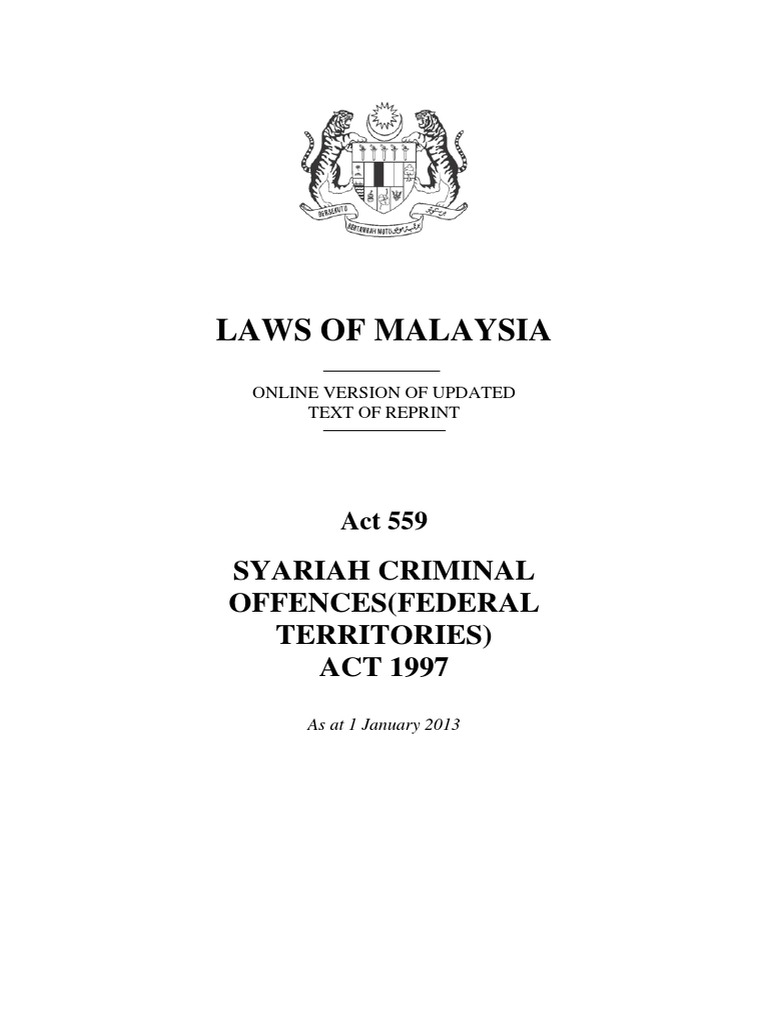 Syariah Criminal Offences Fedreal Territories Act 1997 Act 559 Pnmb2u