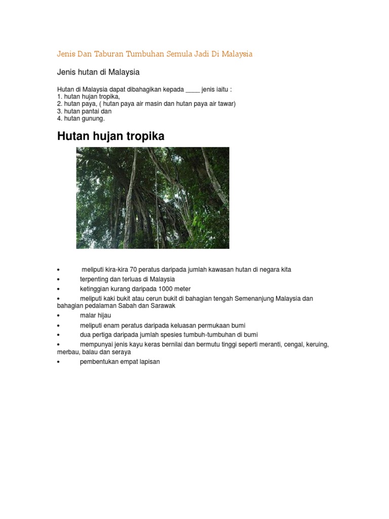 Jenis Dan Taburan Tumbuhan Semula Jadi Di Malaysia