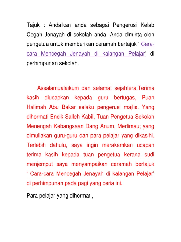 Contoh Teks Pengucapan Awam Dalam Bentuk Ceramah