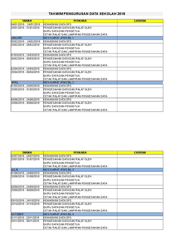 Takwim Pengurusan Data Sekolah