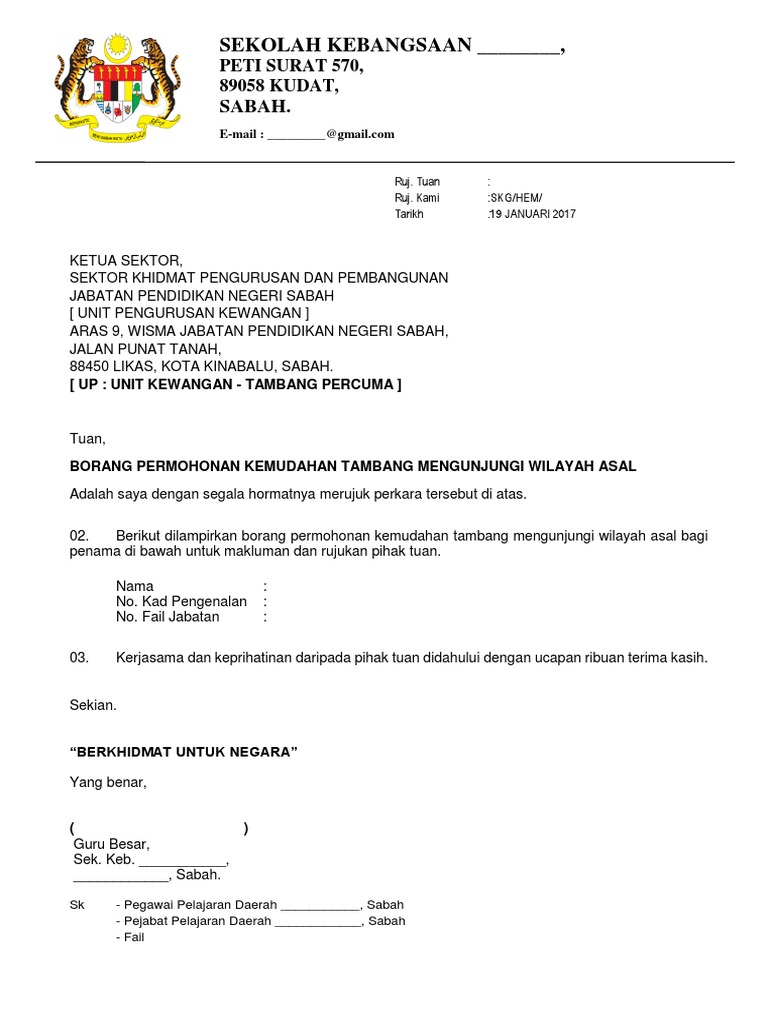 Borang Permohonan Kemudahan Tambang Mengunjungi Wilayah Asal Doc